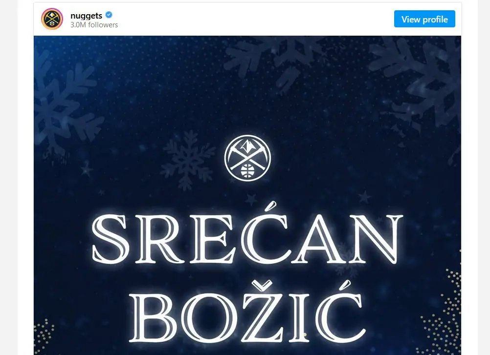 U isto vreme se oglasio i Denver Nagets, koiji je čestitao Božić svim pravoslavnim vernicima.