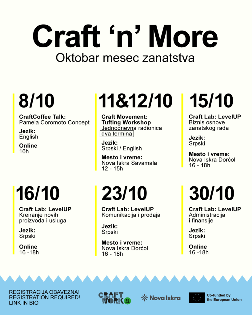 Pod okriljem Nove Iskre, u okviru međunarodnog projekta CraftWork 4 All, u oktobru 2025. u Beogradu i onlajn biće održan besplatan festival zanatstva Craft ‘n’ More.