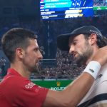 Đoković je odlično otvorio meč – napravio je rani brejk, ali nije uspeo da ga potvrdi. Do sredine prvog seta (3:3) igralo se u egalu, da bi Novak osetio bol u kuku, zbog čega je zatražio medicinski tajm-aut. Nakon toga, tempo mu je znatno opao.