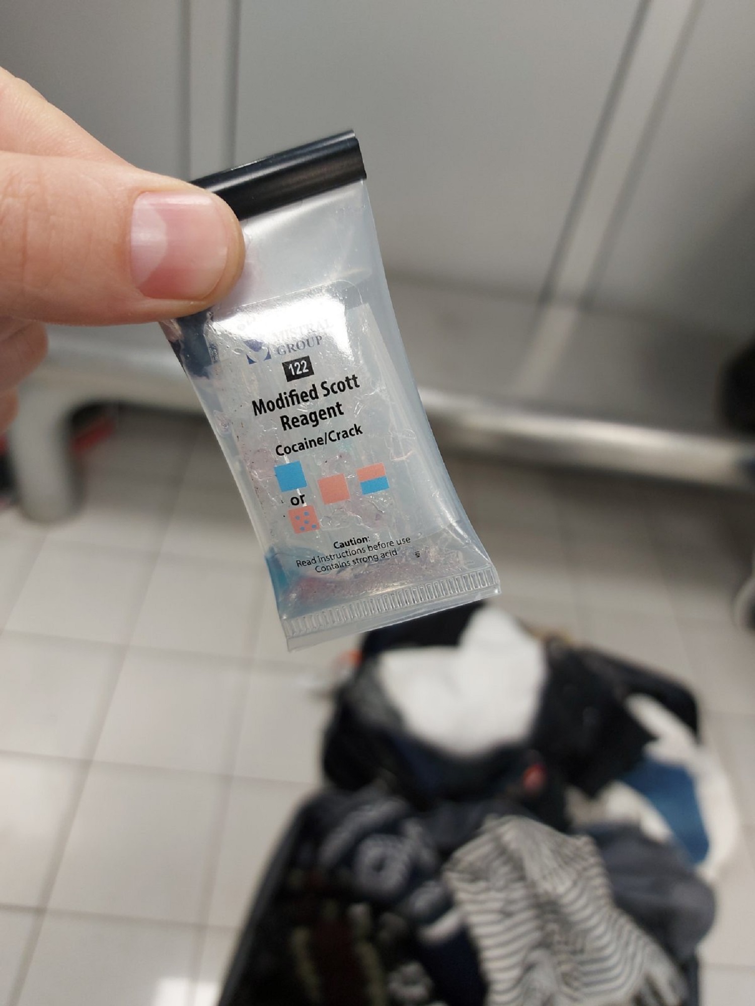 Putnik je otvorio svoj kofer i odmah se osetio jak miris kiseline dok je garderoba koja se nalazila unutra bila vlažna i teža nego što je očekivano. U koferu sem odeće nije bilo ničeg drugog, čak ni obuće niti pribora za ličnu higijenu iako je putnik rekao da dolazi iz Ekvadora gde je kod prijatelja boravio 13 dana.