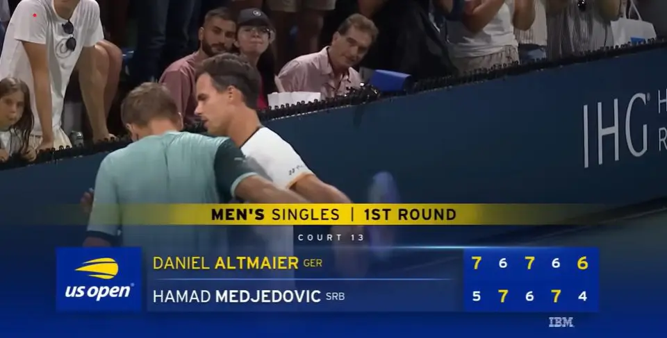 Treći set doneo je novu dramu – još jedan taj-brejk. Međedović je imao set loptu, ali je izgubio tri poena zaredom i u naletu besa polomio reket, dok je Altmajer ponovo poveo.