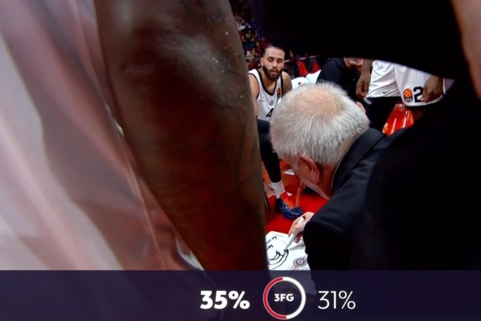 Vodili su Partizan i Olimpijakos šuterske obračune i većim delom smo videli rezultatsku klackalicu, Dvejn Vašingotn pogodio je svaki put kada je bilo potrebno, a Tajrik Džons je čistio sve ispod koša. Nije ni tim Jorgosa Barcokasa bio bez odgovora pa se u samom finišu druge deonice Olimpijakos odlepio, Partizan uzvratio i na kraju sa minimalnom prednošću otišao na odmor 39:38.