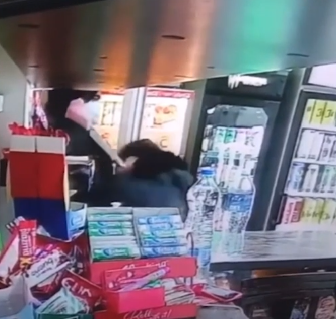 Kako može da se vidi, u jednom delu snimka napadač napada radnicu, tačnije ne dozvoljava joj da prođe i pritom sve vreme drži nož u ruci.