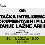 Kroz zanimljive primere iz filmova, Vladimir Šojat, filmski montažer, producent i video umetnik pozabaviće se etičkim pitanjima korišćenja veštačke inteligencije u dokumentarnom filmu.