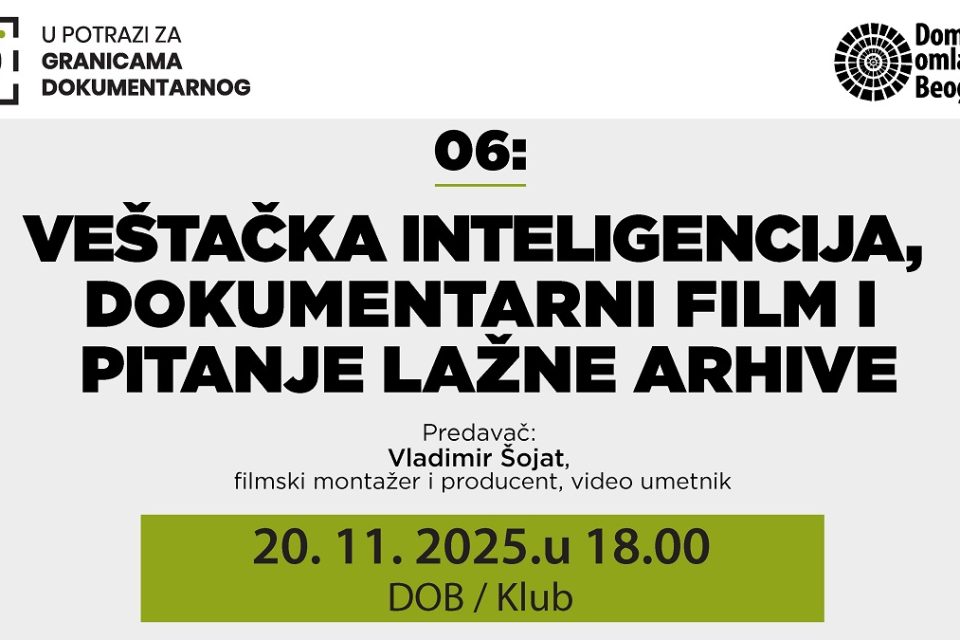 Dom omladine Beograda je u februaru 2024 pokrenuo seriju predavanja o temama vezanim za aktuelnu svetsku produkciju dokumentarnih filmova. Predavanja su fokusirana na fenomene i najnovije tendencije u okviru ove filmske vrste koja je doživela veliku afirmaciju tokom poslednjih 15 godina. U 2025, u skladu sa sve bržim promenama na planu tehnologije, naročito onim vezanim za proizvodnju i reprodukciju slike i zvuka, koja je danas više-manje svima dostupna, kroz seriju predavanja ispitujemo mogućnosti njenog korišćenja u dokumentarnom filmu. AI (veštačka inteligencija) se već široko koristi u dokumentarizmu, kao i VR (virtuelna stvarnost), dok društvene mreže (YouTube, Tiktok, Instagram i dr) odavno imaju važnu ulogu u marketingu ali i u distribuciji filmskih i video sadržaja. Tema su i neki fenomeni koje nove komunikacione tehnologije donose u prvi plan: vertikalni video zapis, hibridni filmovi, rezolucija slike, novi formati i načini distribucije. Takođe, veoma aktuelno pitanje ekologije i dokumentarnog filma posmatramo kroz neke od najboljih dokumentaraca ove i prethodne godine koji su se bavili upravo ovom temom.