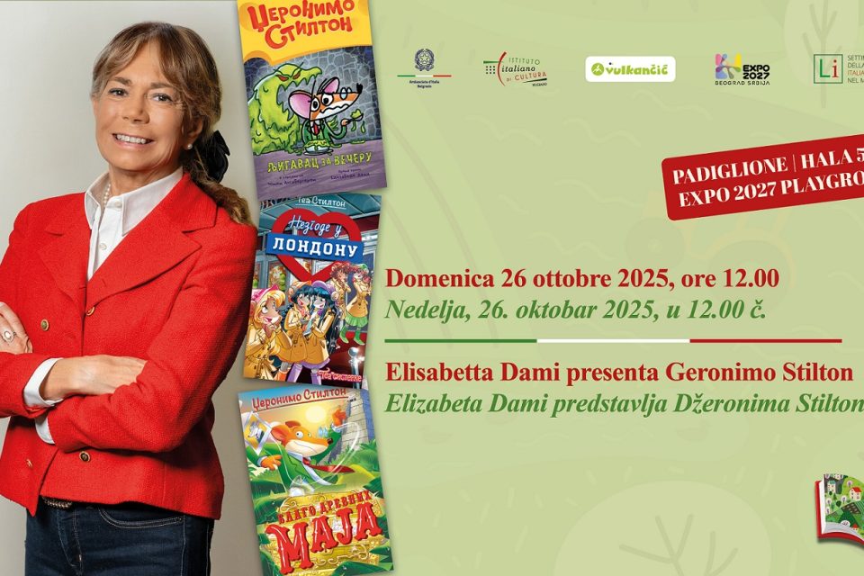 U nedelju, 26. oktobra 2025. godine u 12.00 časova u prostoru „Expo 2027 Playground“ Italijanski institut za kulturu u Beogradu i Vulkan izdavaštvo predstaviće Elizabetu Dami, autorku Džeronima Stiltona, lika o kom maštaju milioni dece.