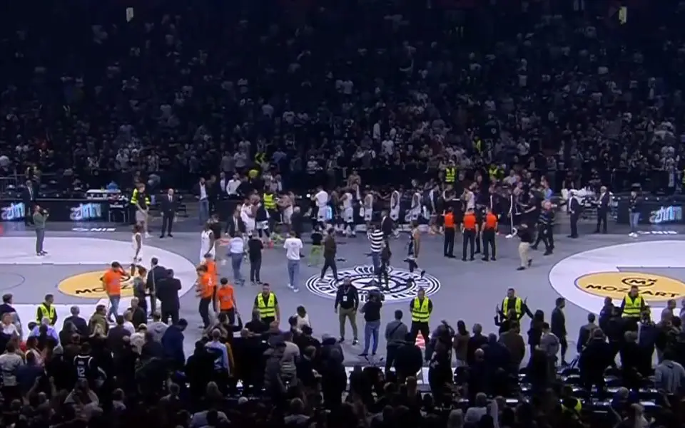 Neviđena krađa dogodila se u poslednjem minutu. Armani je krenuo u kontru, a Bolmaro se sam sapleo i pao na parket. Sudijski trio Difala-Kortez-Konstantinovs je pokazao petu ličnu grešku Parkeru, nakon čega su poleteli raznorazni predmeti iz publike.