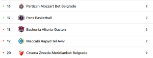 Na začelju se, pored Zvezde, nalaze i Pariz, Baskonija i Makabi.