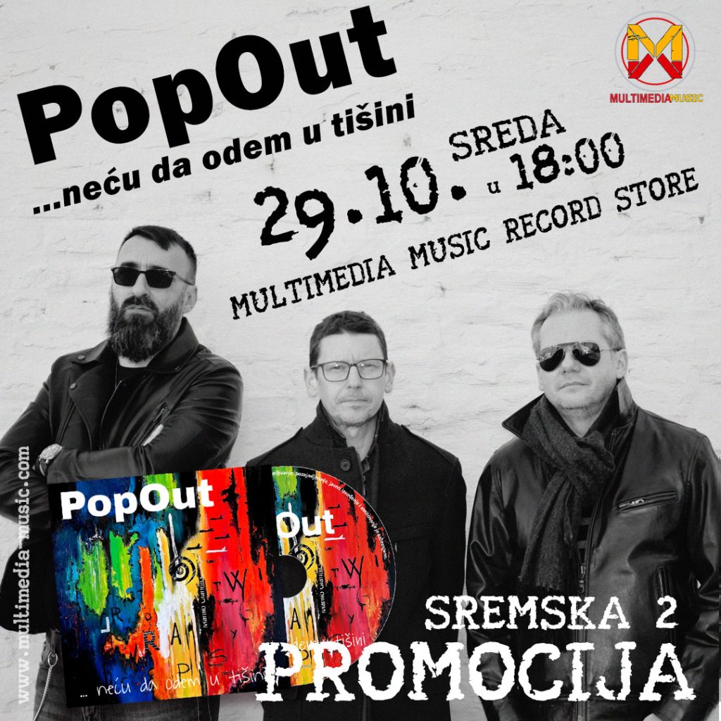Autorski bend PopOut iz Novog Sada poziva vas na promociju svog debitantskog albuma „Neću da odem u tišini“, objavljenog pod okriljem izdavačke kuće Multimedia Music. Promocija će biti održana u sredu, 29. oktobra, od 18 časova u Multimedia Music Record Store-u (Sremska 2, Beograd).