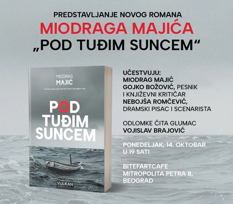 U ponedeljak, 14. oktobra, u BitefArtCafe-u u Beogradu, od 19 sati biće predstavljena nova knjiga Miodraga Majića – Pod tuđim suncem.
