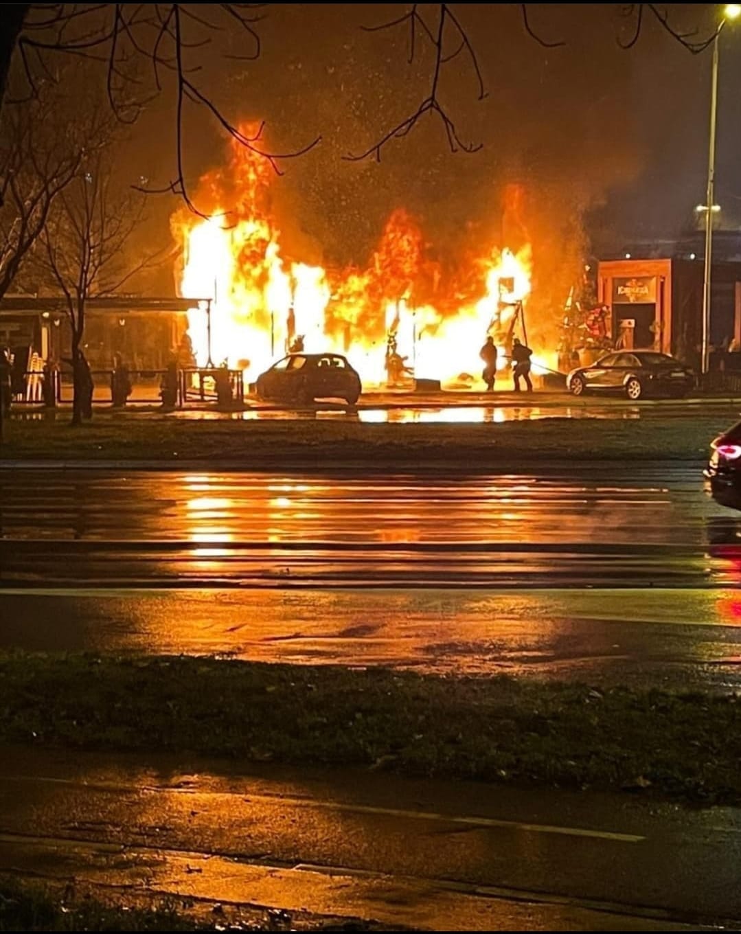 Vatrogasne ekipe su ubrzo po izbijanju požara stigle na lice mesto i krenule u akciju gašenja. Kako saznajemo, požar je izbio oko 22 časa a brzom intervencijom pripadnika Sektora za vanredne situacije oko 22 i 40 časova je lokalizovan. Požar je gasilo ukupno 29 vatrogasaca-spasilaca sa 7 vatrogasnih vozila iz vatrogasno-spasilačkih jedinica Zemun, Voždovac i Zvezdara. Oni su takođe ostali na licu mesta tokom cele noći kako bi radili na dogašivanju požara.