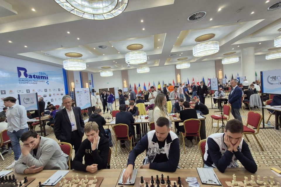 Na EP u šahu u Batumiju, odigrano je četvrto kolo, u kome je naš muški tim nadigrao reprezentaciju Grčke rezultatom 2,5:1.5. Dame su kao i juče igrale nerešeno, ovoga puta sa selekcijom Italije 2:2.
