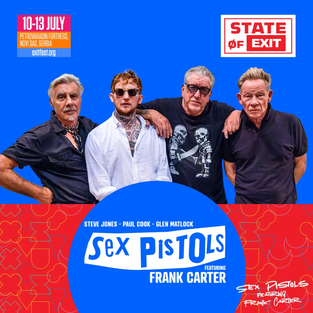 Exitova velika godišnjica ne bi mogla da ima moćniji manifest – Sex Pistols, uz energičnog Franka Cartera, donose najglasniji wake-up call u istoriji muzike, direktno na Petrovaradinsku tvrđavu, u nedelju, 13. jula.