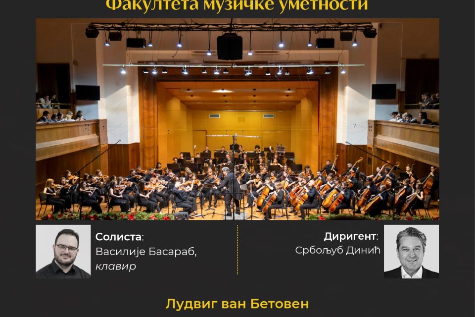 U subotu, 6. decembra u 19 časova, u svečanoj sali Beogradske filharmonije, biće održan koncert Simfonijskog orkestra Fakulteta muzičke umetnosti u Beogradu, pod upravom dirigenta maestra Srboljuba Dinića, uz solistički nastup mladog pijaniste Vasilija Basaraba.