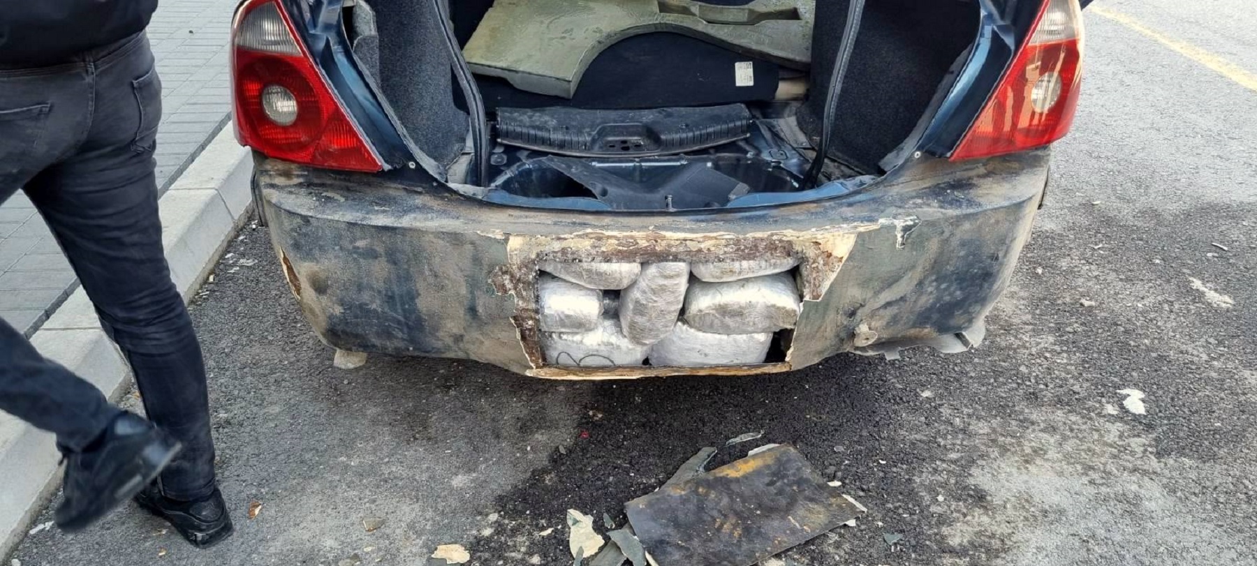 Nakon što je zadnji branik skinut, utvrđeno je da se ispod njega krije specijalno napravljeni prostor, tzv. “bunker“, pun paketa zelene biljne supstance obmotanih streč folijom.
