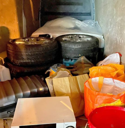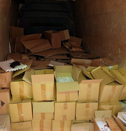 Usledio je detaljni pregled i ispod prijavljenih polovnih stvari, čija uloga je bila da posluže kao paravan, pronađeno je 108 kartonskih kutija koje su bile pune različitih kozmetičkih proizvoda.