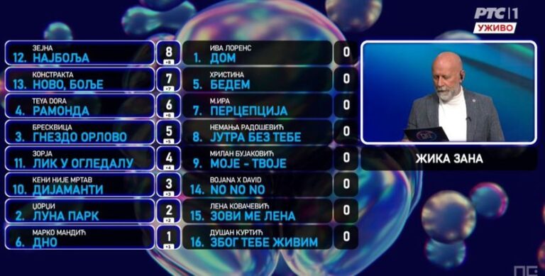 561 Teya Dora je pobednica Pesme za Evroviziju nakon glasanja žirija i publike. Apsolutni pobednik glasanja publike bila je numera pod rednim brojem 3. Breskvica – Gnezdo Orlovo. Ipak zbirom bodova, Teya Dora će predstavljati Srbiju na takmičenju Pesme za … Nastavi sa čitanjem Teya Dora je pobednica Pesme za Evroviziju