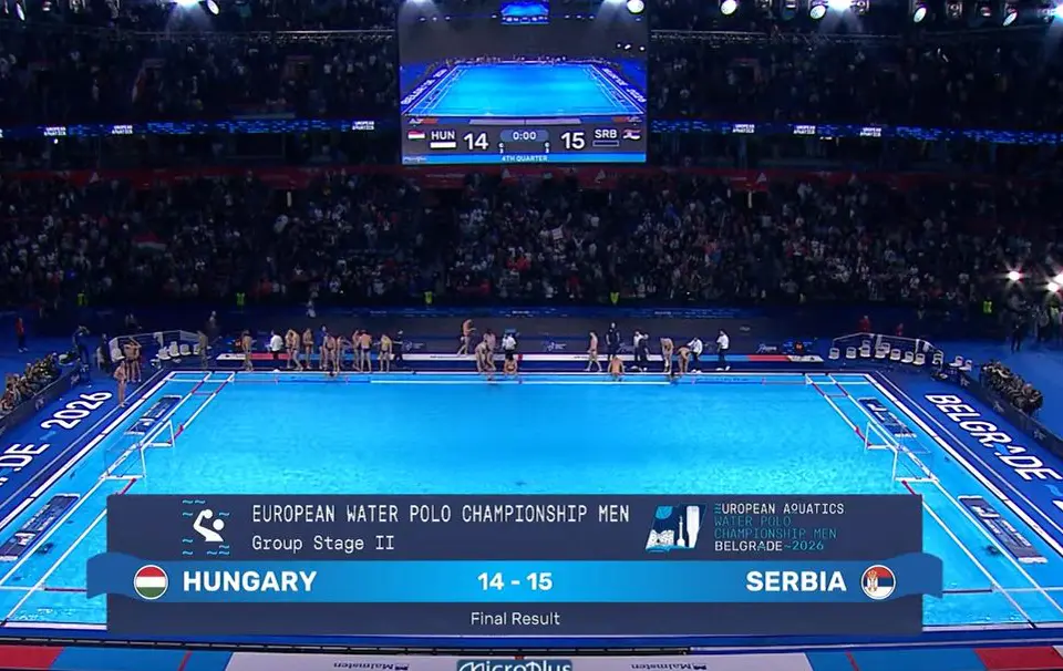 Vaterpolo reprezentacija Srbije ostvarila je dramatičnu pobedu nad Mađarskom 15:14 u 5. kolu Evropskog prvenstva u Beogradskoj areni i kolo pre kraja osigurala plasman u polufinale.