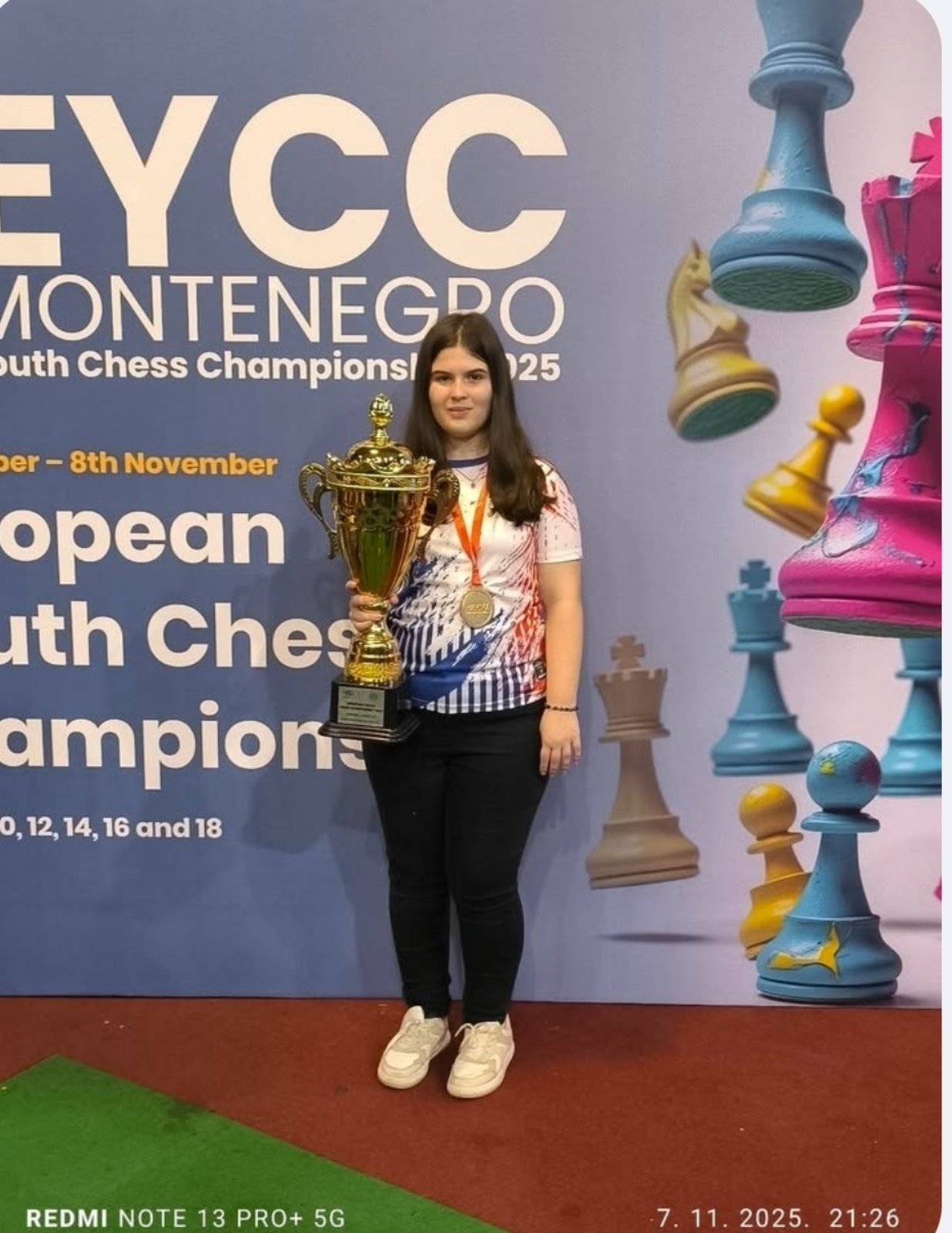 Vera Vujović je u poslednjem kolu velikom upornošću i veštim manevrima nadigrala Slovenku Anju Berber u 9. Kolu grupe do 14 godina na Prvenstvu Evrope za mlade u Budvi. S obzirom da je njena glavna konkurentkinja iz Poljske remizirala sa svojom sunarodnicom, odmah se znalo – evropsko zlato ne menja vlasnicu!