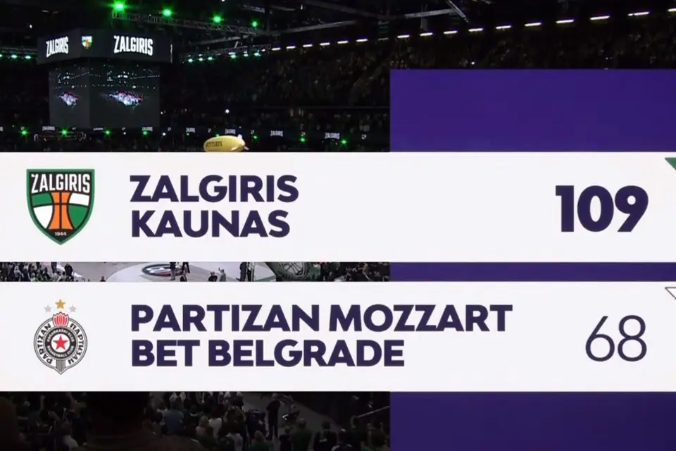 Košarkaši Partizana izgubili su od Žalgirisa rezultatom 109:68 u 17. kolu Evrolige. Ovo je najubedljiviji poraz crno-belih u ovom takmičenju.