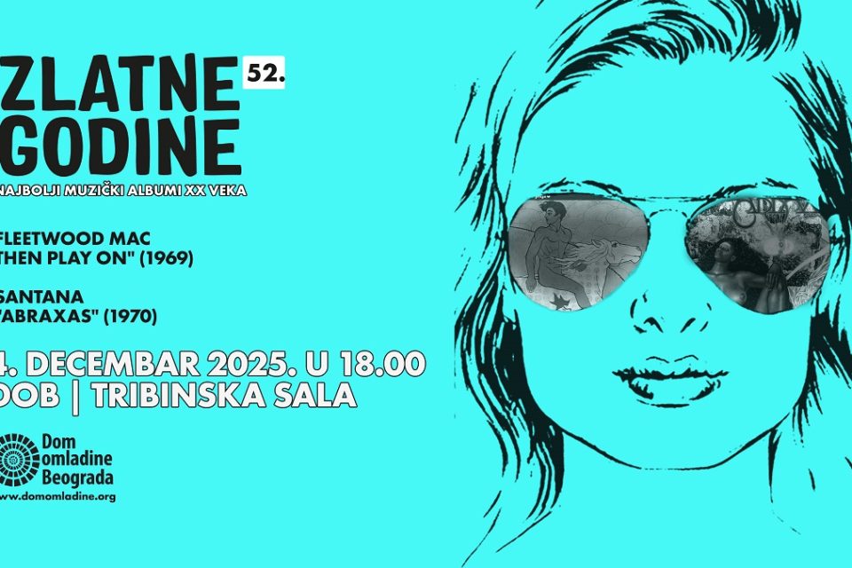 Poslednja ovogodišnja tribina iz ciklusa „ZLATNE GODINE“, posvećenog najboljim muzičkim albumima 20. veka, biće održana u četvrtak, 4. decembra od 18.00 časova u Tribinskoj sali Doma omladine Beograda. Na predeset drugom muzičkom druženju sa Žikicom Simićem i Draganom Ambrozićem biće reči o slavnim bendovima predvođenim velikim gitaristima, koji su zadužili rokenol kao žanr. Ulaz je slobodan.