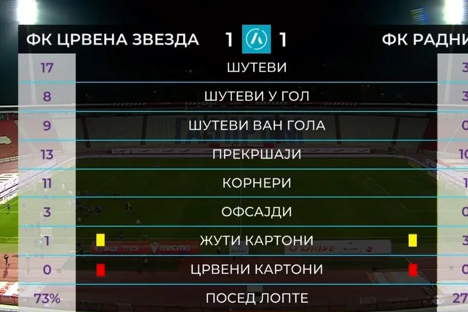 Crvena zvezda je u ovom 14. kolu odigrala nerešeno sa Radnikom 1:1.